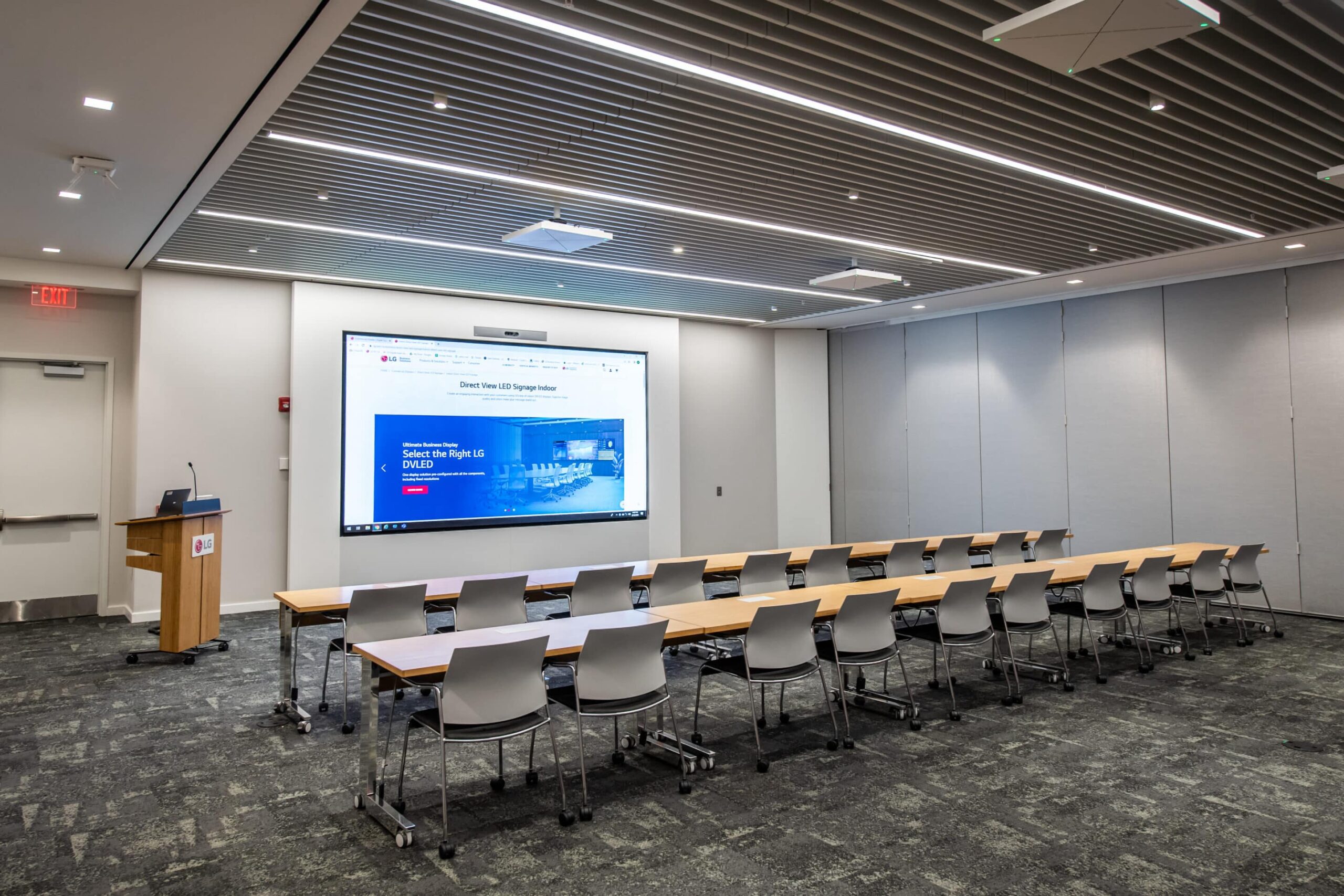 Les salles du conseil et de réunion ont bénéficié des installations les plus remarquables, incluant un écran DVLED de 173 pouces dans la salle du conseil du PDG ainsi que dans plusieurs espaces polyvalents, des modèles 4K de 98 pouces pour les grandes salles de conférence, et des écrans de 86 et 55 pouces dans les salles de taille moyenne et les petits espaces collaboratifs.